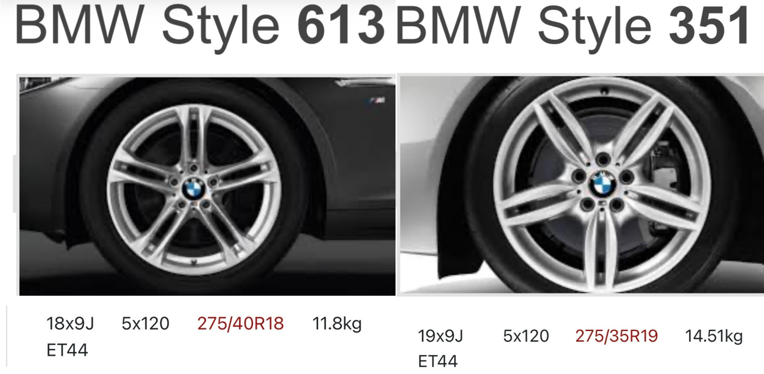 BMW 5시리즈 같은 경우 앞뒤 사이즈 똑같이 나오는 경우도 있지만