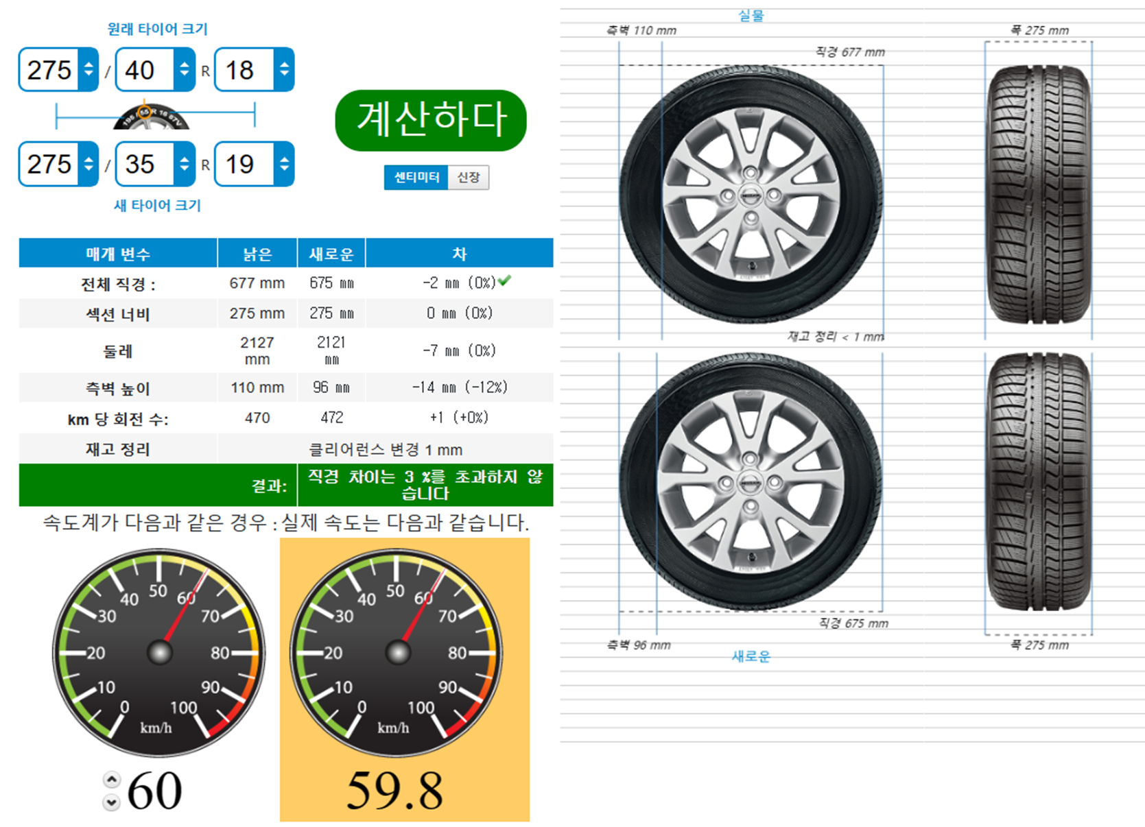 타이어 계산기 온라인 - 시각적 계산기 타이어. (tire-calc.com)